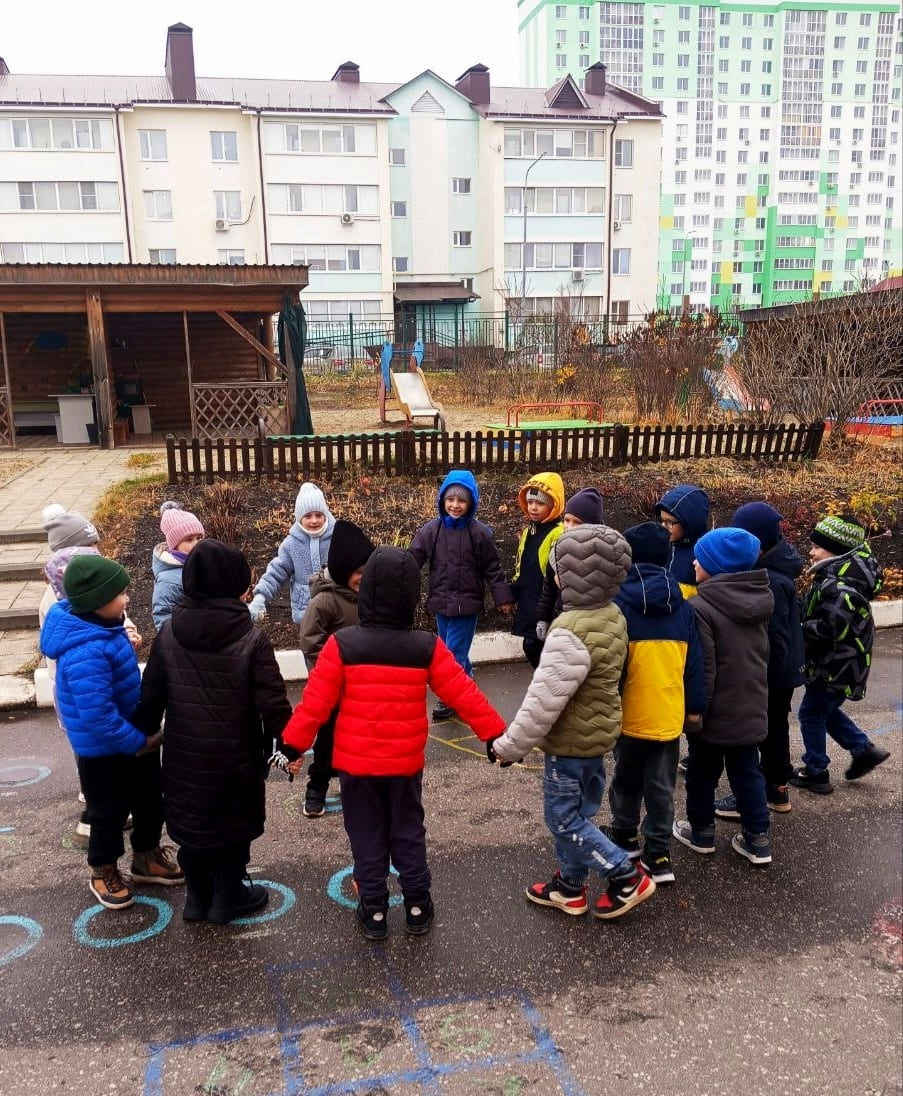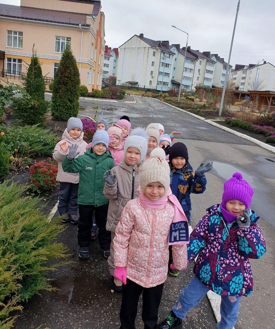 Несмотря на холодную осеннюю погоду, наши дети дружно выходят на прогулку! Свежий воздух, звонкий смех и румяные щёчки – вот лучшие спутники осеннего дня.