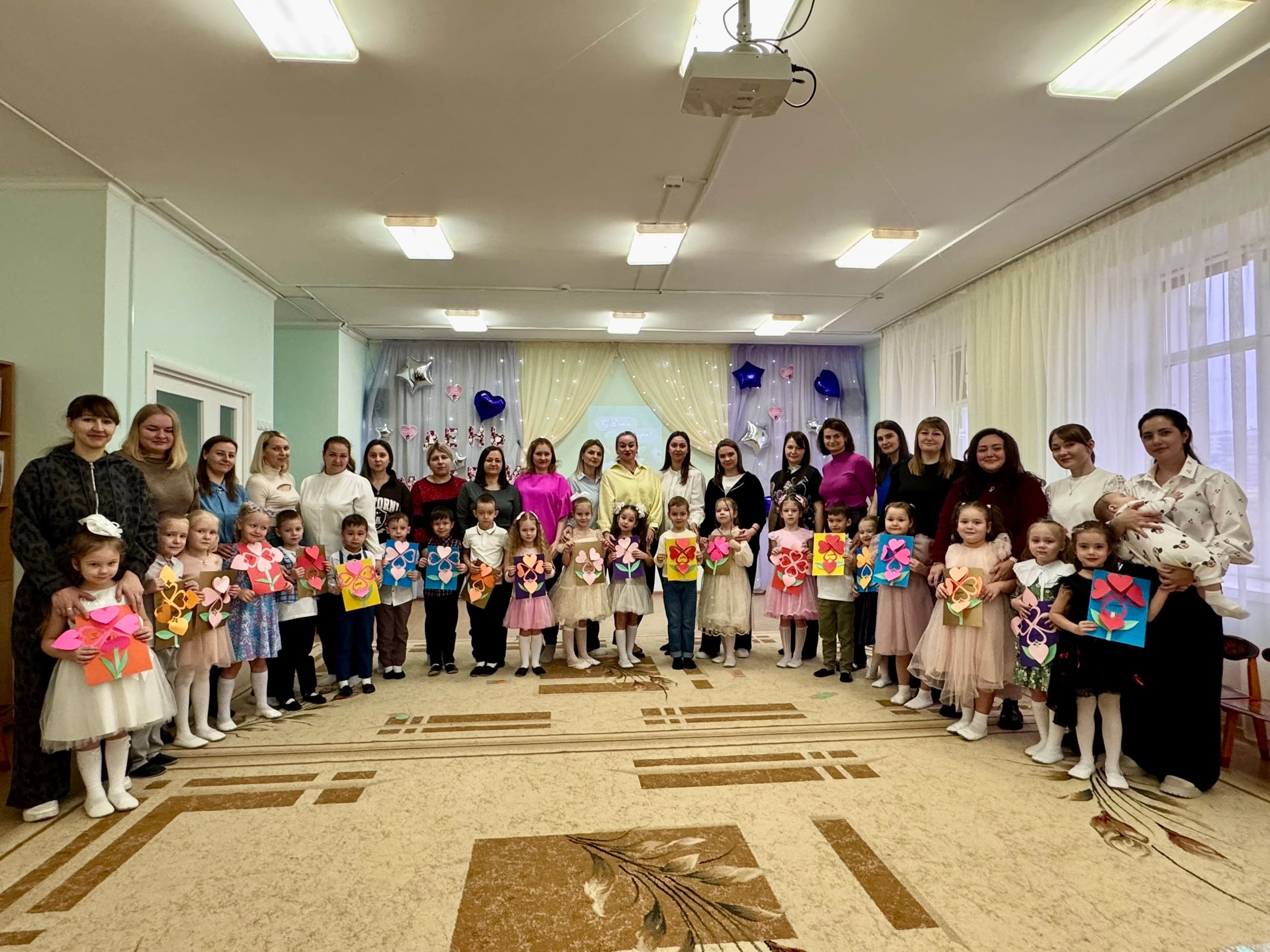 И конечно, кульминацией праздника стал самый волнительный момент — вручение открыток. Ребята с гордостью подбежали к своим мамам, чтобы лично вручить свой главный сюрприз, сделанный своими руками.