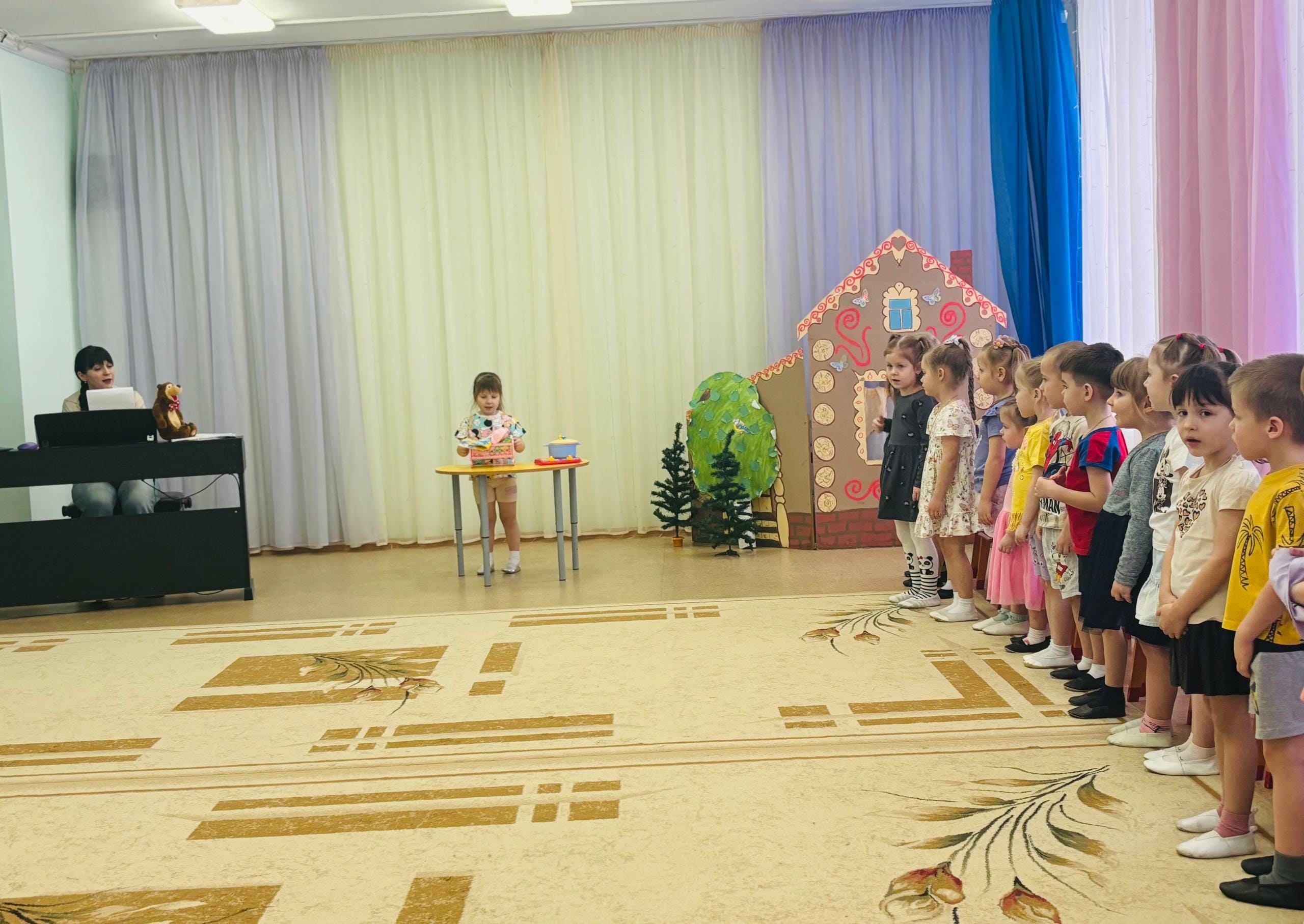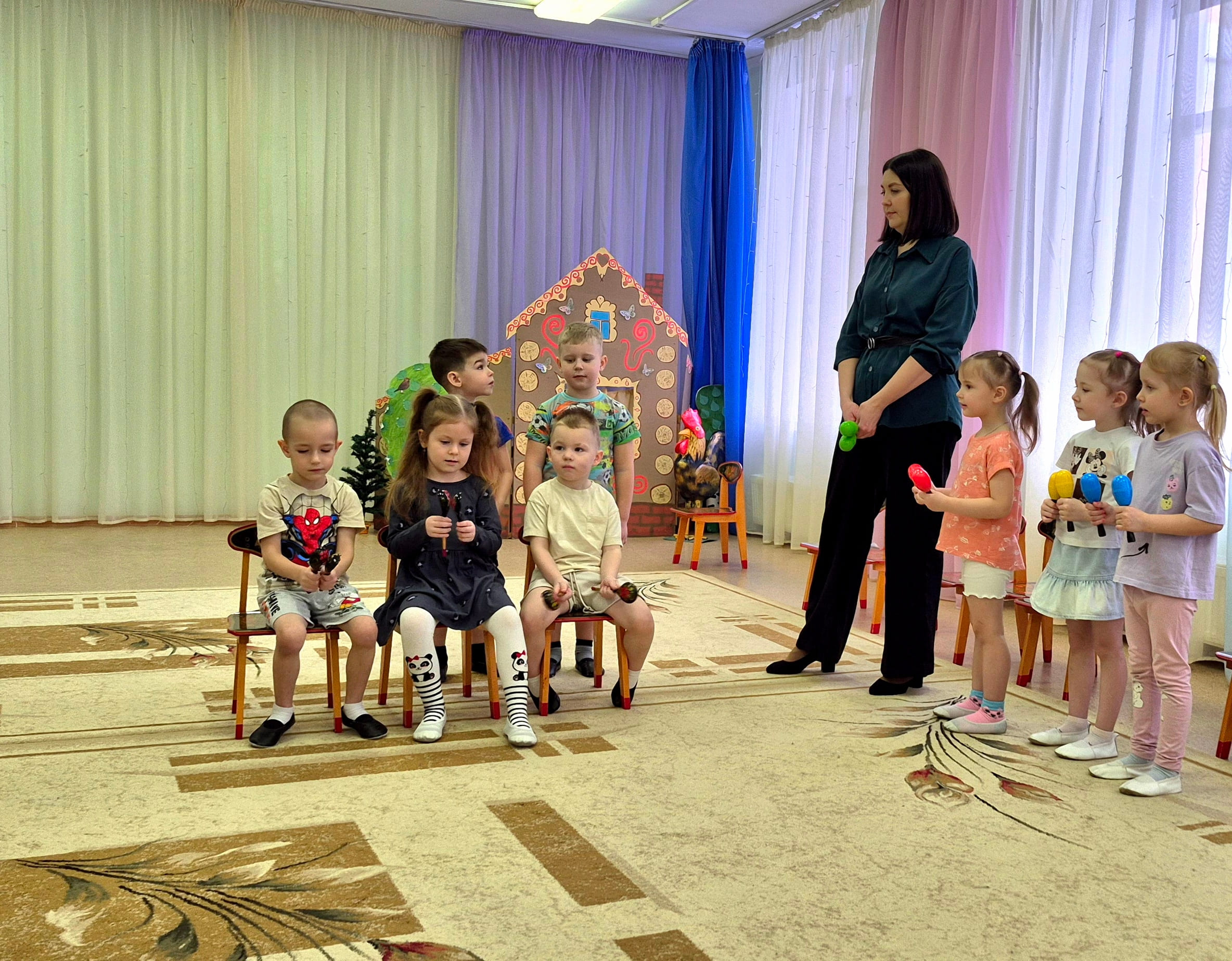 Сегодня в нашем детском саду звучала не просто музыка, а сама сказка! Карина Михайловна Зацепина, наш музыкальный руководитель, пригласила ребят из средней группы «Курочка Ряба» в удивительное путешествие — на открытое занятие.