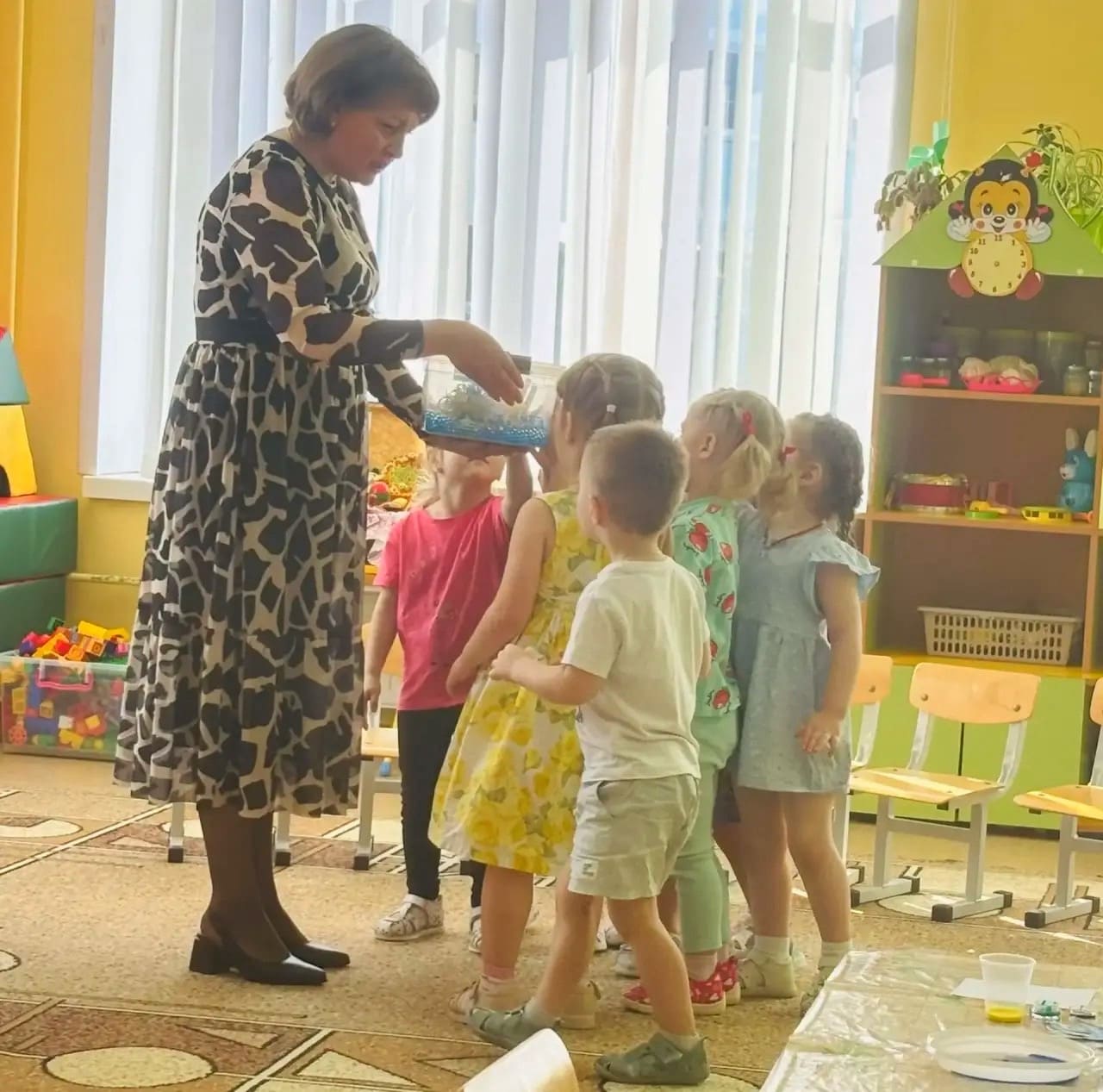 Дети с радостью создавали ярких рыбок в аквариуме, развивая мелкую моторику и наблюдательность. Каждый малыш вложил свою фантазию и свои эмоции в работу, что сделало занятия особенно ярким и запоминающимся.